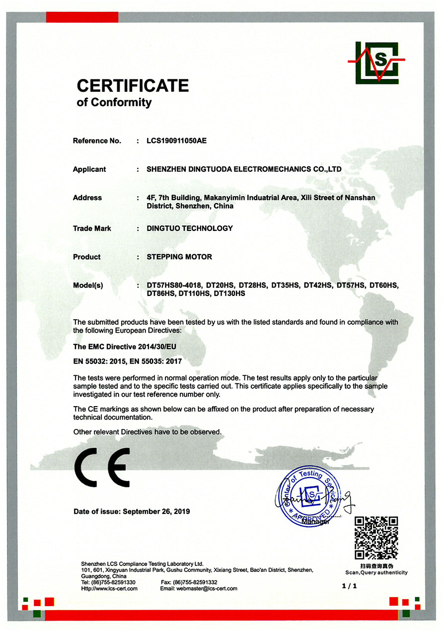 首頁->產(chǎn)品認(rèn)證->步進(jìn)電機(jī)CE認(rèn)證證書