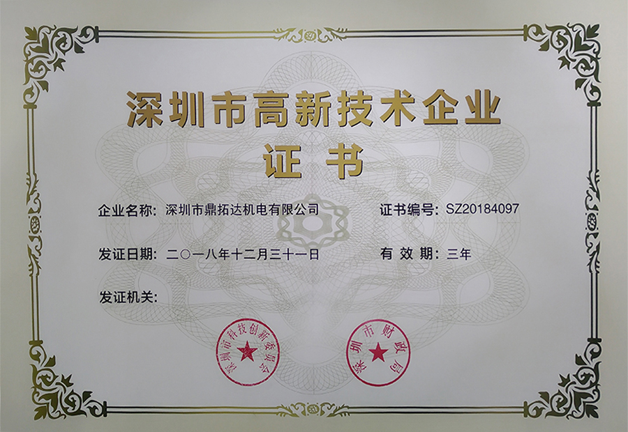 深圳市高新技術企業(yè)證書