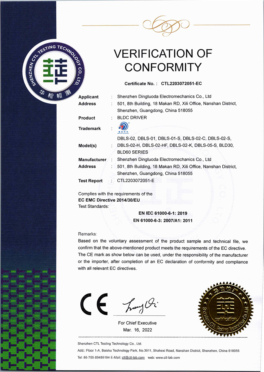 首頁(yè)->產(chǎn)品認(rèn)證->無(wú)刷驅(qū)動(dòng)器CE證書(shū)